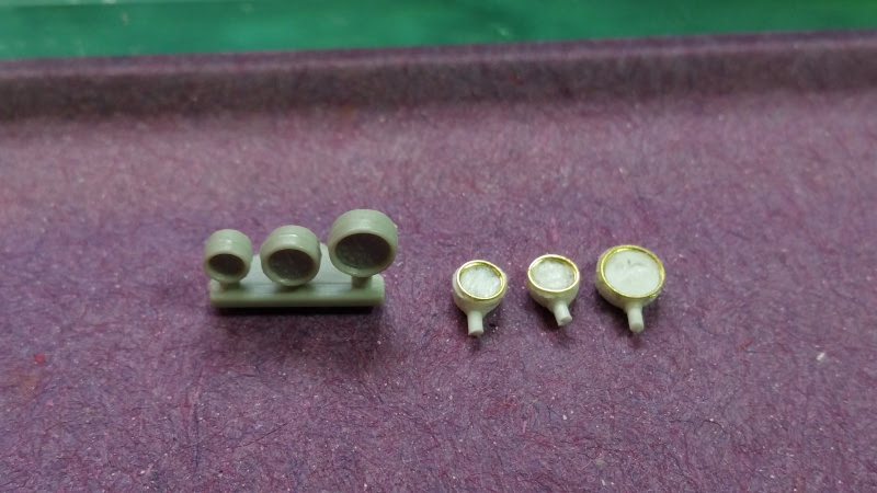 Les manomètres sont refaits en carte plastique et profilé rond ils sont agrémentés d'un cercle en photodécoupe. Un film plastique représentant les graduations et les aiguilles terminera l'ensemble.